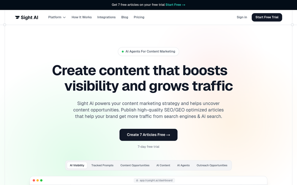 Sight AI is a comprehensive platform designed to empower content marketers with actionable insights and tools to enhance their online visibility and drive organic traffic. By leveraging AI-driven visibility tracking, content generation, and website indexing capabilities, Sight AI helps brands stay ahead in the competitive digital landscape.